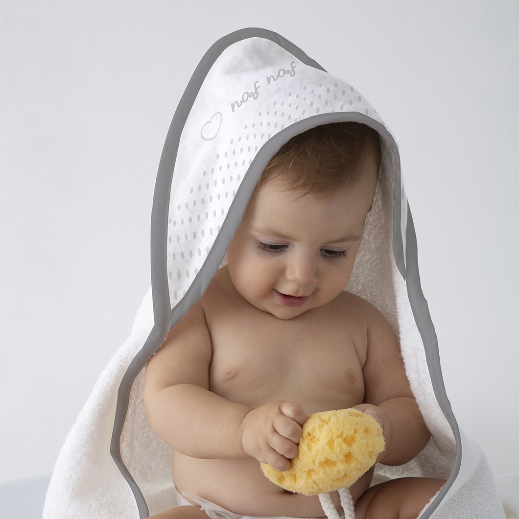 Capa de baño NAFNAF para bebes. Una prenda muy cómoda para el baño del bebé, con capucha. Indispensable para el baño en los primeros meses del recién nacido.