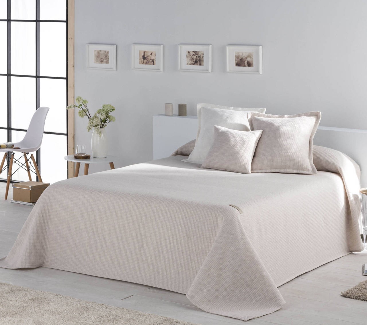 Diseño en colores lisos. Es una colcha muy fina, lo cuál permite utilizarla en verano aunque también se puede utilizar en los meses de entretiempo.