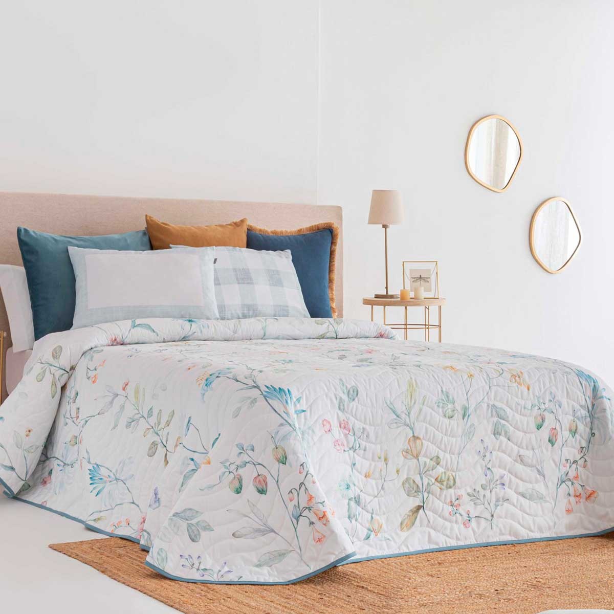 Elegante combianción floral con tonaliades suaves. Este tipo de colchas nos encantan por su fácil manejo y poco peso son cómodas para conciliar el sueño.