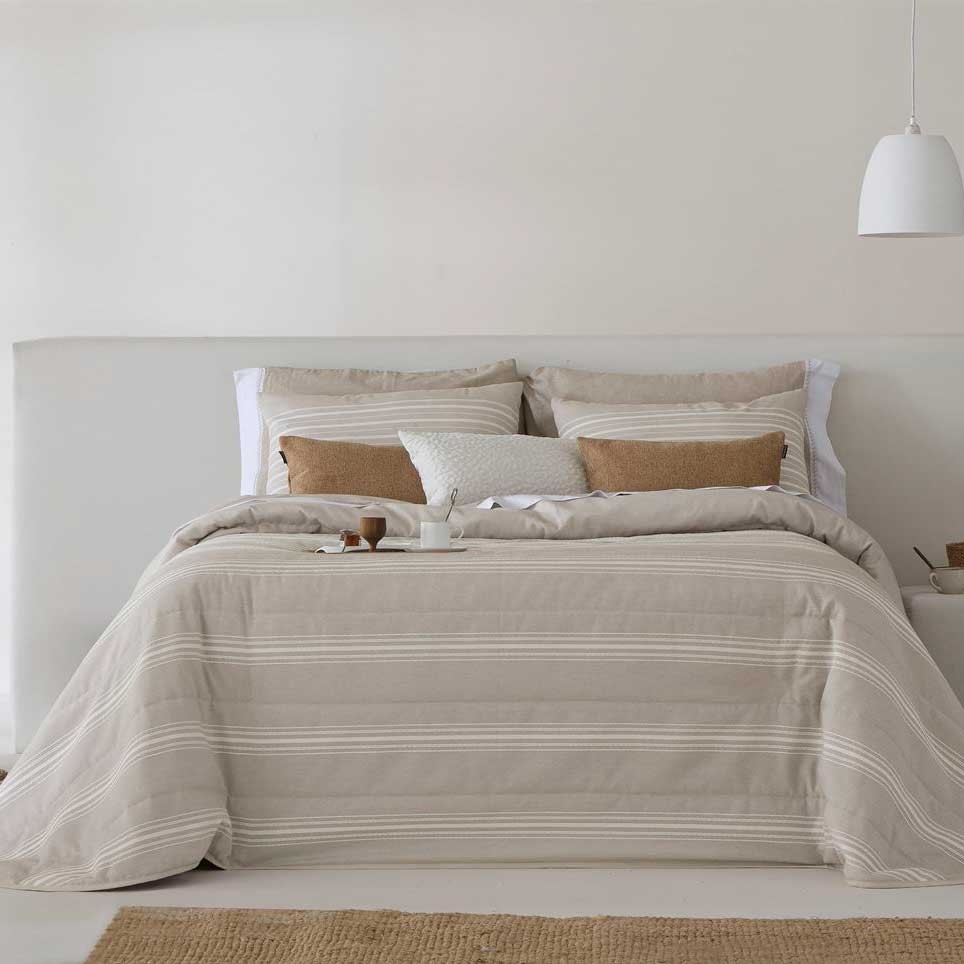 Colcha boutí, diseño sencillo y elegante para decorar cualquier estilo de dormitorio. El color beige es una buena elección aporta ese toque fresco a la habitación, sensación de limpieza y de paz.