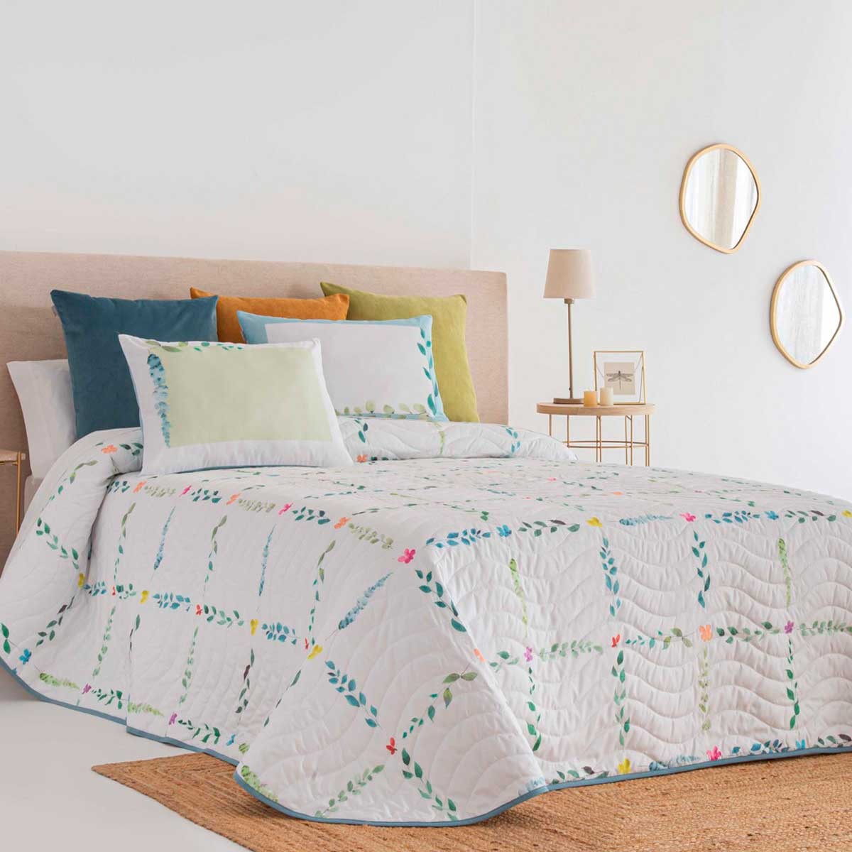 Elegante combianción floral con tonaliades suaves. Este tipo de colchas nos encantan por su fácil manejo y poco peso son cómodas para conciliar el sueño.