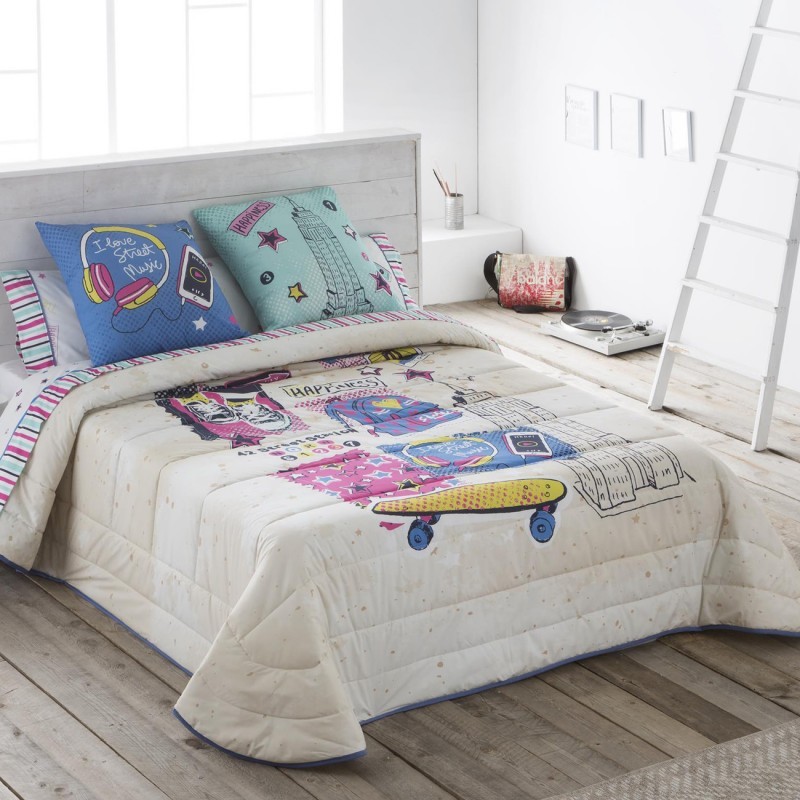 Colcha juvenil, estampado sencillo y elegante que combinará a la perfección en cualquier estilo de dormitorio.