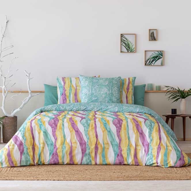 Funda nórdica reversible, con un bonito estampado multicolor por una cara y con flores amarillo mostazapor la otra.