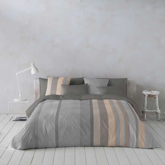 Funda nórdica con un diseño elegante con formas lineales tonos grises que potencian la sensación de tranquilidad de la habitación.