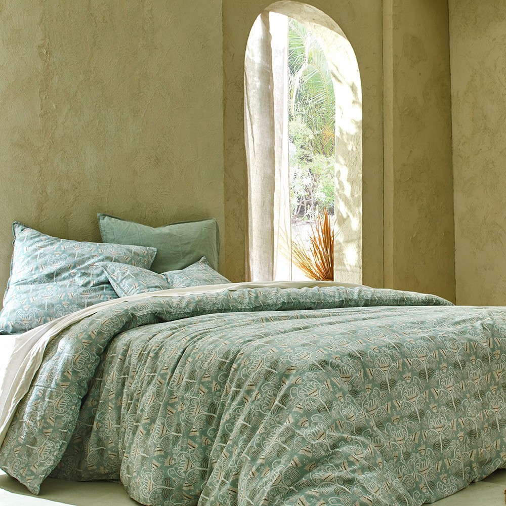 Funda nórdica NAFNAF lino/algodón orgánico Bati verde