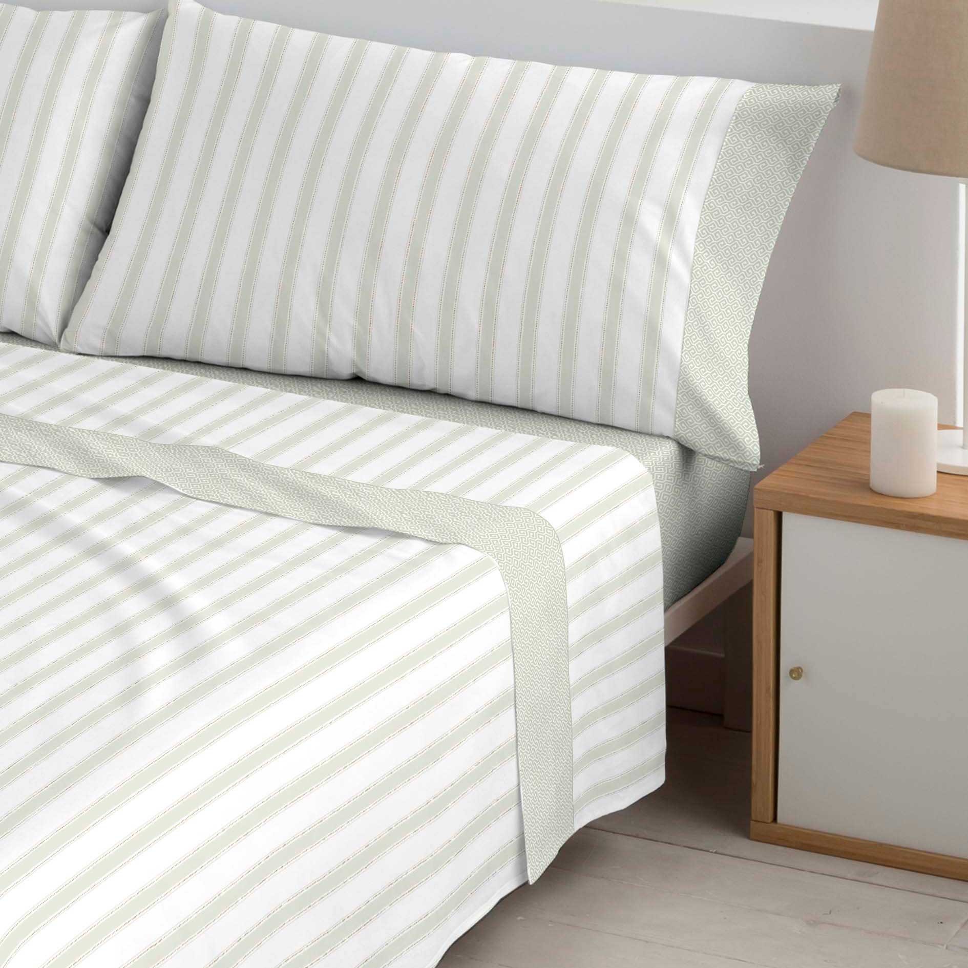 Juego completo de sábanas de la marca Bambú modelo Jazz gris . Juego de cama con finas rayas, la bajera está preparada para colchones de 30 centímetros, es ideal tanto para primavera y verano.