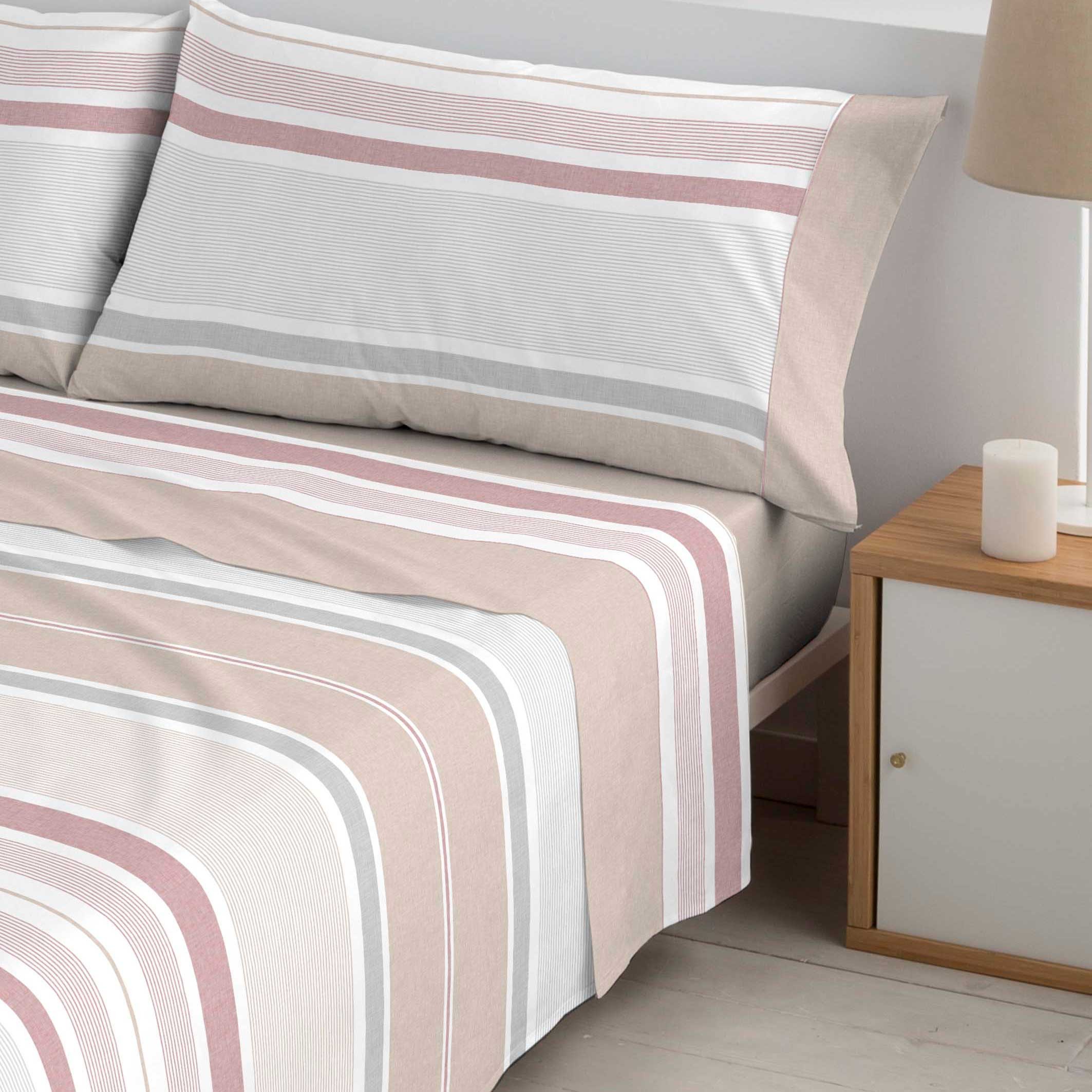 Juego completo de sábanas de la marca POLO POLO . Juego de cama con finas rayas, la bajera está preparada para colchones de 30 centímetros, es ideal tanto para primavera y verano.