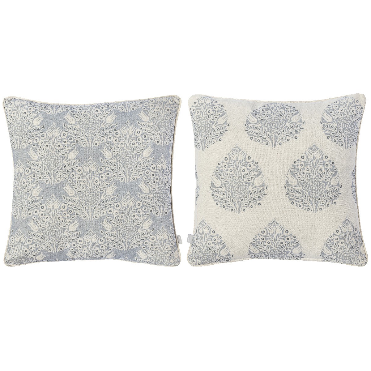 Cojín decorativo de 50x50 cm confeccionado en España en tejido jacquard 100% algodón, donde el detalle del dibujo y la calidad del acabado marcan la diferencia.
