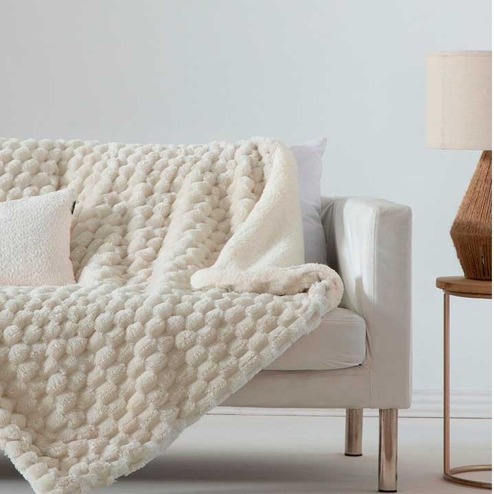 Un plaid sencillo y elegante y muy suave. Combínalo con las colchas y fundas nórdicas de la marca y el cojín del mismo modelo, o simplemente úsalo para estar calentit@ en el sofá.