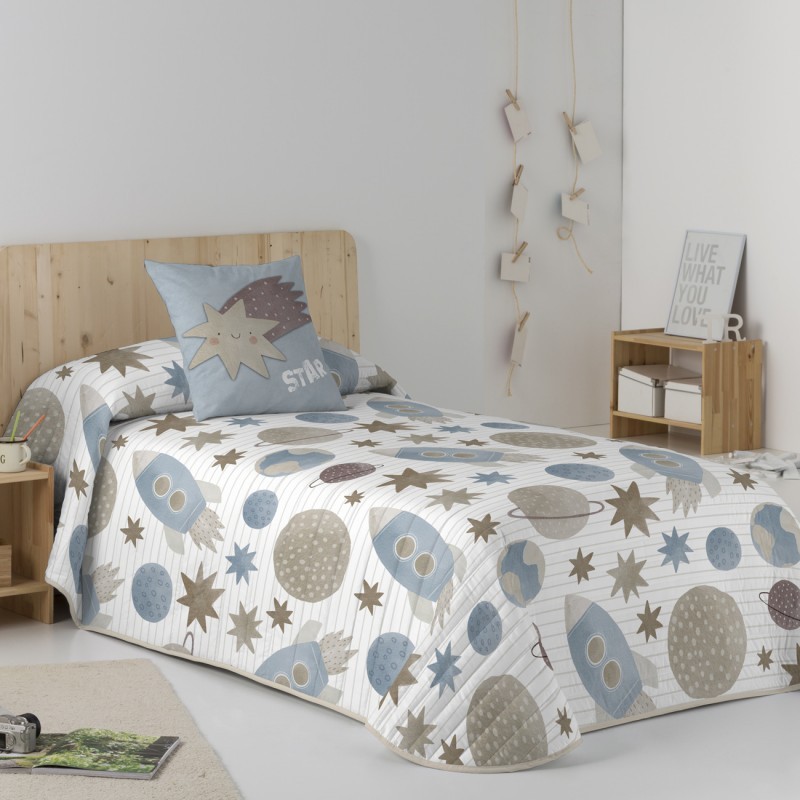 Divertida colcha con estampado infantil, un paseo por las estrellas.