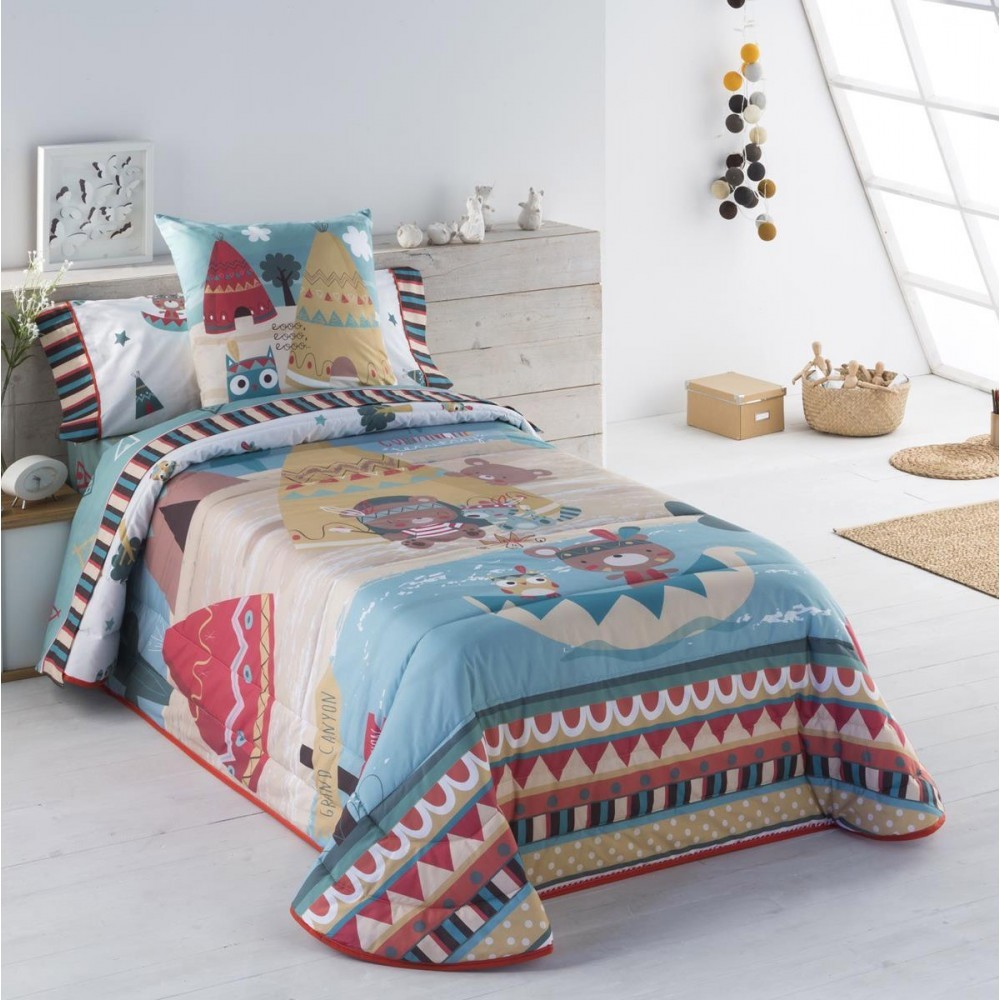 Colcha infantil unos divertidos pequeños indios son los protagonista de este modelo alegro y original. Un modelo que encantará a los más pequeños.