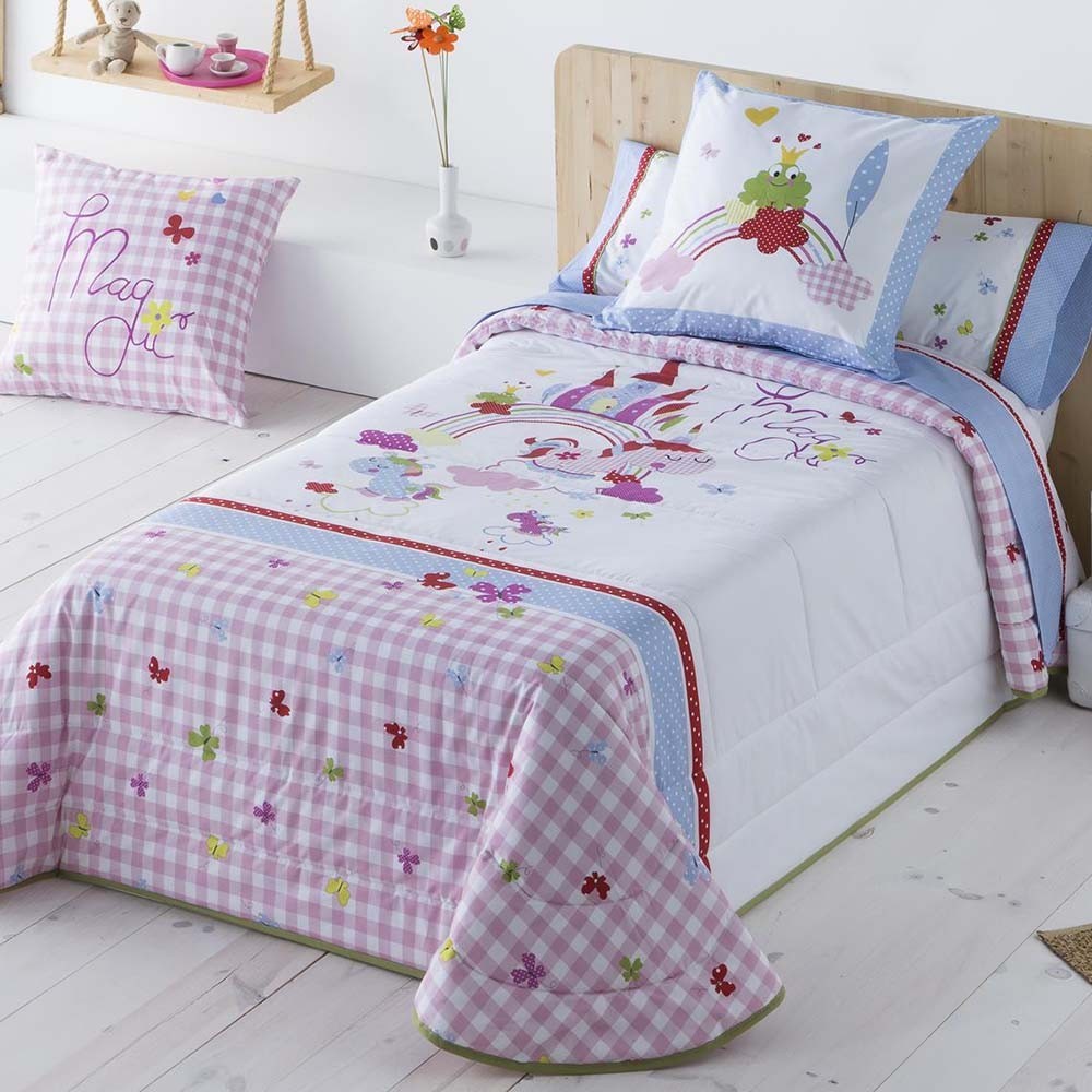 Colcha infantil, con estampado dulce y mágico, tonalidades rosas para esta funda nórdica ideal. Un modelo que encantará a los más pequeños, esta prenda es ideal para las estaciones de entretiempo o para las casas con calefacción.
