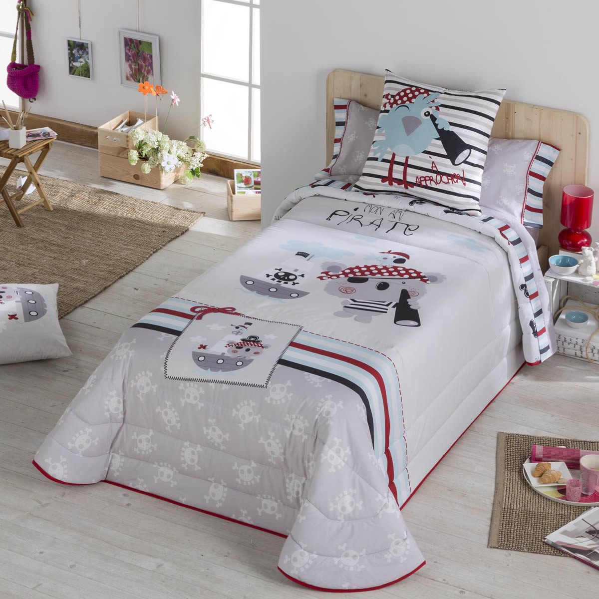 Colcha infantil, divertida combinación colores con un pirata en el centro de la colcha. Un modelo que encantará a los más pequeños.